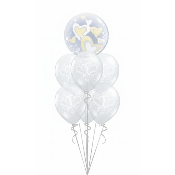 Hermoso Bouquet compuesto por 1 Globo metalizado 35″ (85 cm), 2 Globos metalizados 18″ (46 cm), 2 globo latex 11″ (28cm) y pesa.