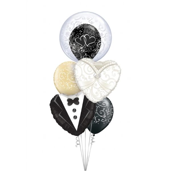 Bouquet Two Hearts: Arreglo de globos en helio romantico para aniversario, san Valentín o cumpleaños.