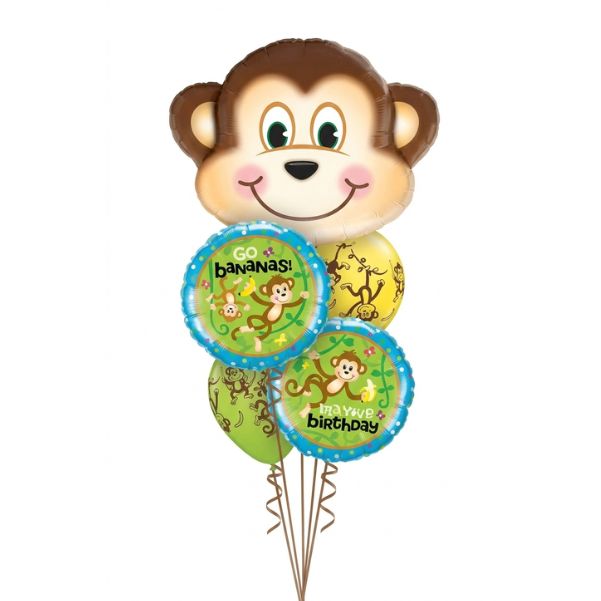 Small Bouquet Cumple Jardín: Arreglo de cumpleaños con globos de látex en forma de flor con globos de animalitos.